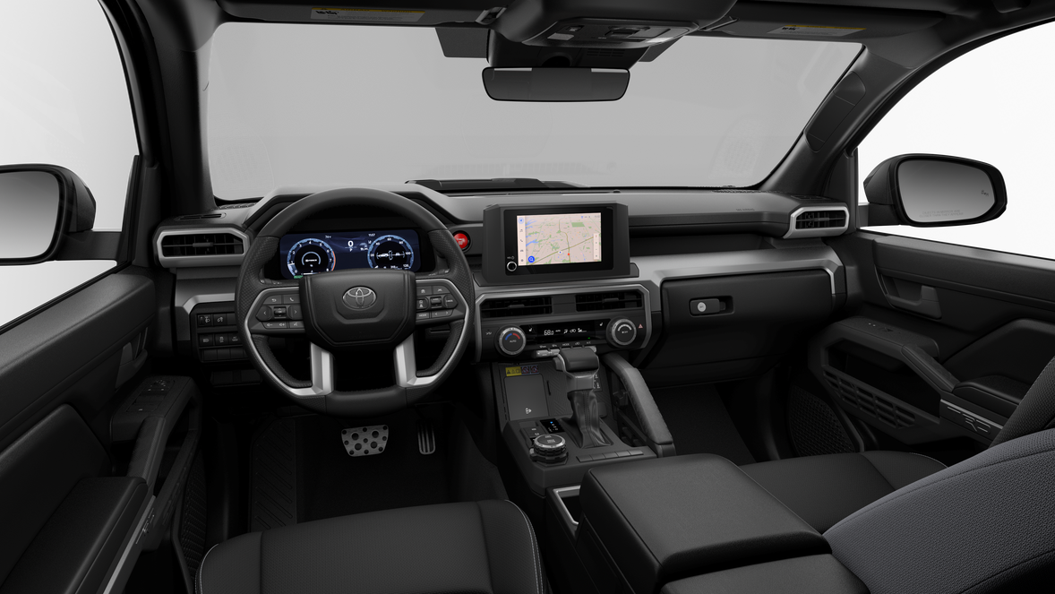 - Normal and Sport Modes~Mechanical and Performance@Drive Modes: TOW/HAUL driving modes ~Mechanical and Performance@Drivetrain: Part-time 4-Wheel Drive (4WD) with electronically controlled 2-speed transfer case (high/low range) and Active Traction Control (A-TRAC)~Mechanical and Performance@Body/Frame: Reinforced body-on-frame construction with TNGA-F high-strength boxed-steel ladder frame~Mechanical and Performance@Suspension: Independent double-wishbone front suspension with coil springs and stabilizer bar; Multi-link rear suspension with coil springs and stabilizer bar~Mechanical and Performance@Suspension: Conventional twin tube shock absorbers~Mechanical and Performance@Steering: Electric Power Steering (EPS); power-assisted rack-and-pinion~Mechanical and Performance@Brakes: Power-assisted front and rear ventilated disc brakes~Mechanical and Performance@Brakes: Electric Parking Brake (EPB) ~Mechanical and Performance@Off-Road: Front and rear recovery points~Mechanical and Performance@Towing: Integrated towing receiver hitch and wiring harness with 4- and 7-pin connectors ~Safety and Convenience@3-point seatbelts for all seating positions; driver's-side Emergency Locking Retractor (ELR) and Automatic/Emergency Locking Retractor (ALR/ELR) on all passenger seatbelts~Safety and Convenience@Toyota Safety Sense™ 3.0 (TSS 3.0) — Pre-Collision System with Pedestrian Detection (PCS w/PD)