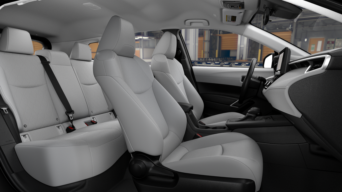 • 27 Lane Tracing Assist (LTA) 28 controls~Interior@7-in. digital gauge cluster~Interior@Two total front USB-C charging outlets 66~Interior@Manual air conditioning with air filter and rear-seat vents~Interior@6-way manual driver's seat~Interior@4-way manual passenger seat~Interior@Fabric-trimmed 60/40 split fold-flat second-row seats with adjustable outboard headrests~Interior@8-in. Toyota Audio Multimedia with 6 speakers