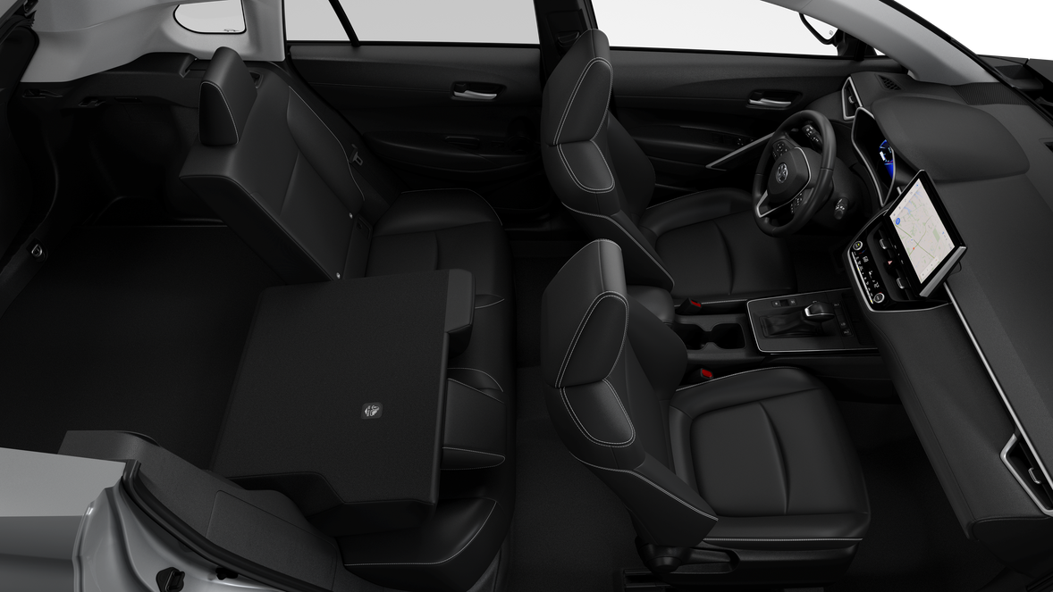 • Lane Tracing Assist (LTA) controls~Interior@12.3-in. digital gauge cluster~Interior@Qi-compatible wireless charging ~Interior@Four total USB-C charging outlets: two front and two rear~Interior@Front automatic dual zone air conditioning with air filter and rear-seat vents~Interior@Rear fold-down center armrest with two cup holders~Interior@10-way power-adjustable driver's seat with lumbar support~Interior@4-way manual passenger seat~Interior@Heated front seats~Interior@SofTex®-trimmed 60/40 split fold-flat second-row seats with adjustable outboard headrests~Interior@10.5-in. Toyota Audio Multimedia with 6 speakers