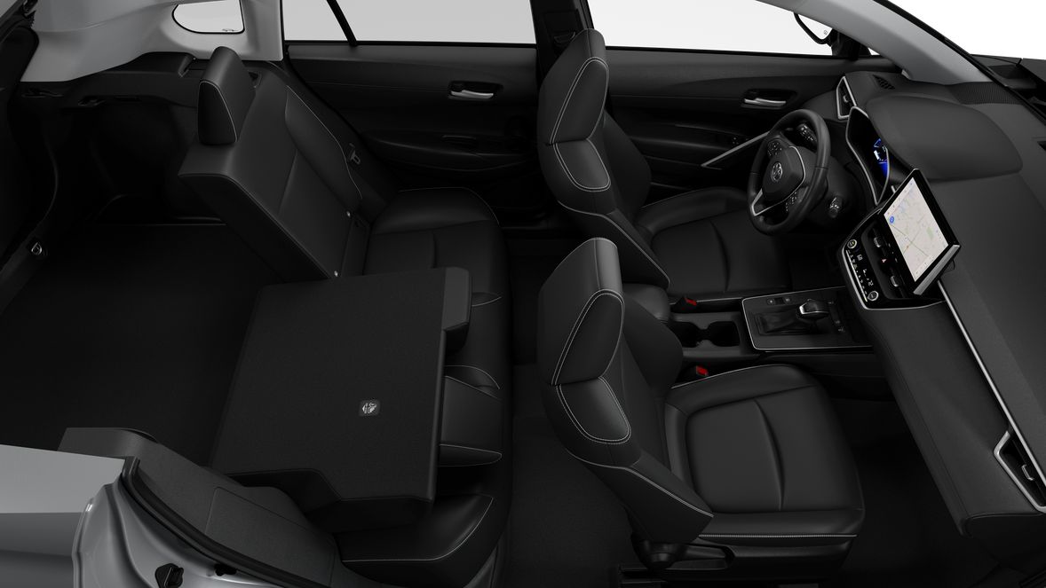 • Lane Tracing Assist (LTA) controls~Interior@12.3-in. digital gauge cluster~Interior@Qi-compatible wireless charging ~Interior@Four total USB-C charging outlets: two front and two rear~Interior@Front automatic dual zone air conditioning with air filter and rear-seat vents~Interior@Rear fold-down center armrest with two cup holders~Interior@10-way power-adjustable driver's seat with lumbar support~Interior@4-way manual passenger seat~Interior@Heated front seats~Interior@SofTex®-trimmed 60/40 split fold-flat second-row seats with adjustable outboard headrests~Interior@10.5-in. Toyota Audio Multimedia with 6 speakers