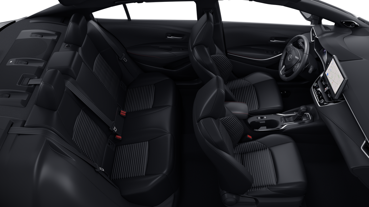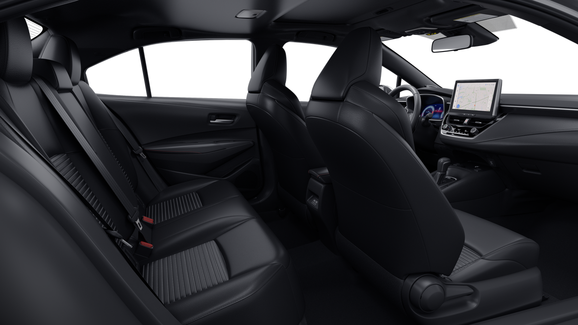 - and push-button controls~Interior@Automatic engine shutoff~Interior@Passenger-side glove compartment~Interior@Two front cup holders~Interior@Front- and rear-door storage pockets~Interior@Two rear cup holders~Interior@12.3-in. digital gauge cluster~Interior@Qi-compatible wireless charging ~Interior@Rear window defogger with timer~Interior@Front and rear power windows with one-touch auto up/down~Interior@Power door locks with automatic locking feature~Interior@One 12V auxiliary power outlet ~Interior@10.5-in. Toyota Audio Multimedia touchscreen with six speakers