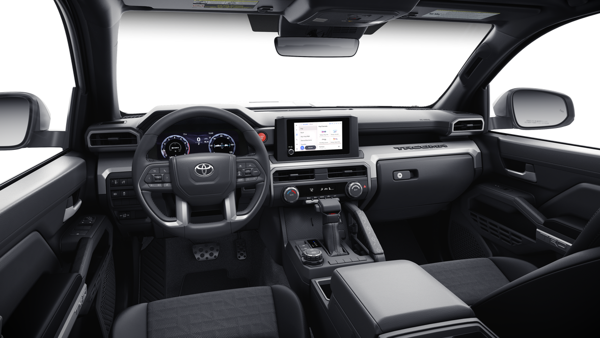 TRD Sport Premium Package (4WD A/T) — includes SofTex®-trimmed seats with heated and ventilated 8-way power-adjustable front seats, leather-trimmed heated steering wheel, 14-in. Toyota Audio Multimedia display, Panoramic View Monitor (PVM), 39 JBL® 30 Premium Audio with JBL® FLEX 31 portable speaker, moonroof, Qi-compatible wireless charging, 46 dual zone automatic climate control, Front and Rear Parking Assist with Automatic Braking (PA w/AB) 38 and Pedestrian Detection, 44prewired auxiliary switches, digital rearview mirror, Integrated Trailer Brake Controller (ITBC), 29 power open/close tailgate, 45 61 Digital Key 16 capability, 400W/120V 1 AC power inverter, and power horizontal rear window